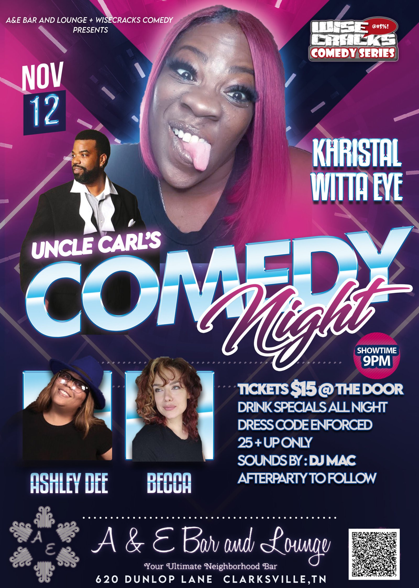 Born and raised in Music City ,USA, comedian Carl Burrell , also famously known as Uncle Carl combines witty commentary with organic, intelligent comedy and blends it to perfection using incredibly quick improvisational skills and a captivating speaking voice. Either nominated or chosen as Funniest or Most Witty since 4th grade (not that you would care), known by friends, family and co-workers as “that guy” the one who makes the 2 hour meeting stress melt away with a well timed quip or joke. Comfortable in just about every comedy scenario ever booked for, Carl Burrell is an established comedian with a bright future and currently looking for booking in the Greater UNITED STATES of AMERICA area, even Alaska.